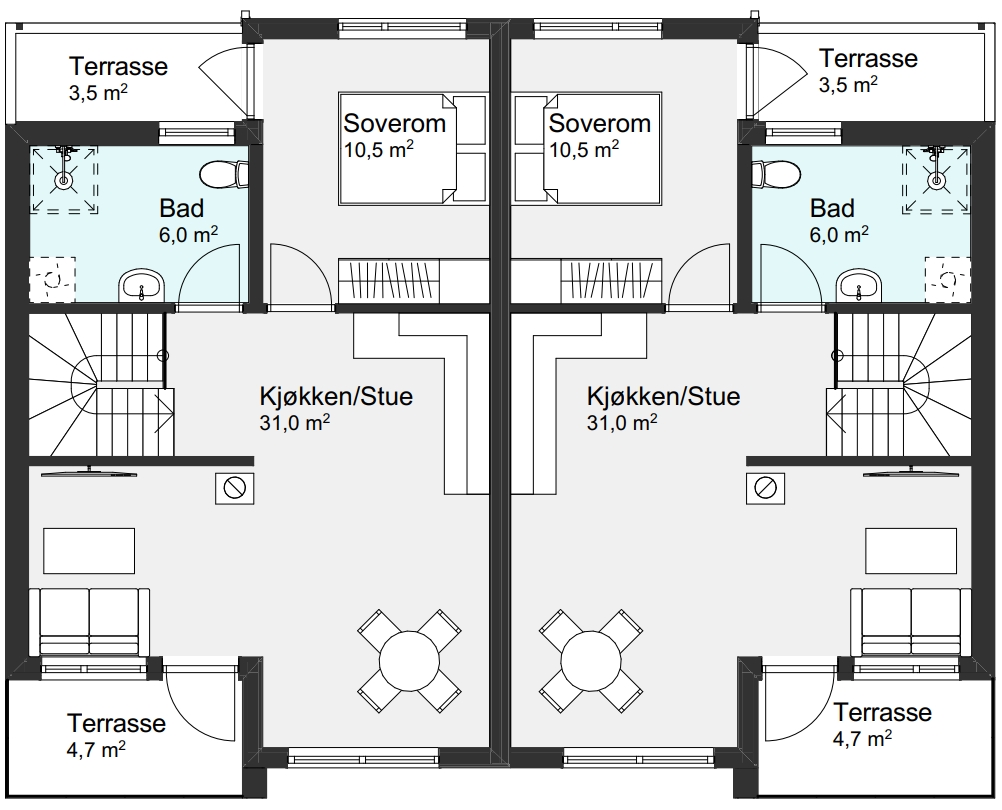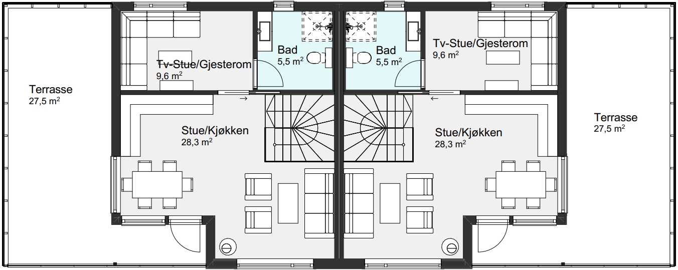 Romslig tomannsbolig med stor terrasse